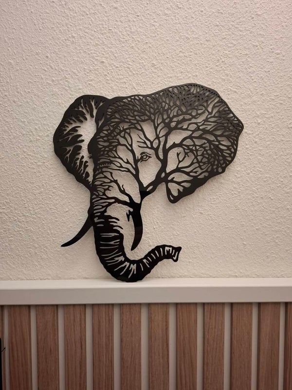 Deze mooie olifant is gemaakt van 3mm dik zwart acrylplaat en is 30 cm groot.